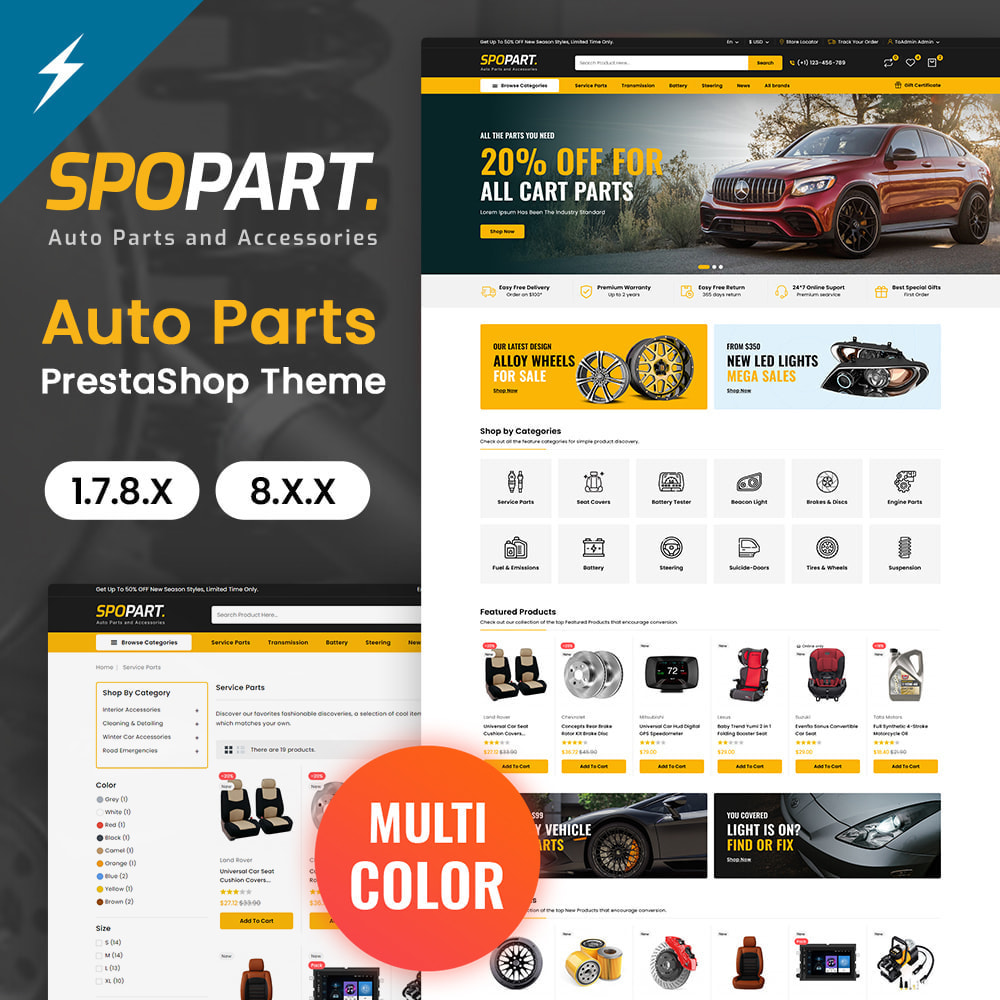 Choose any ready-made awesome color or pick by own and easily set from back office. No coding knowledge required