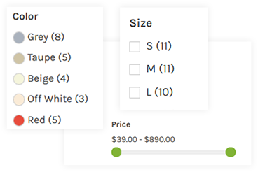 This creative filter will help make customers their preferred choice by changing size, color, price, and more.