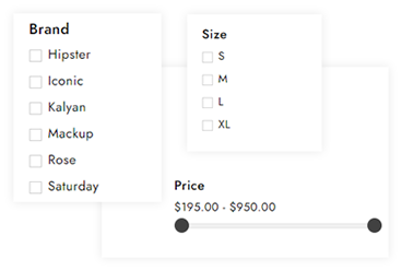 This creative filter will help make customers their preferred choice by changing size, color, price, and more.