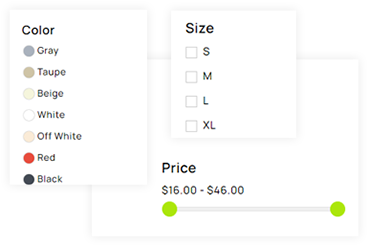 This creative filter will help make customers their preferred choice by changing size, color, price, and more.