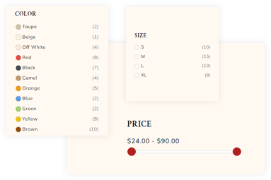 This creative filter will help make customers their preferred choice by changing size, color, price, and more.