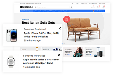 A recent sales notification window appears when someone buys a product from your website to attract website visitors.