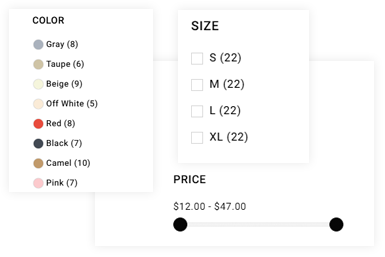This creative filter will help make customers their preferred choice by changing size, color, price, and more.